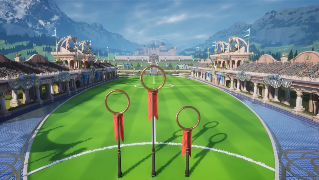 Le stade de Poudlard, déjà bien connu, reste fidèle aux films. Celui de Beauxbâtons, situé dans le décor montagneux des Pyrénées, s’inspire des jardins à la française. Il rappelle le style du stade de l’équipe de France dans « Coupe du Monde de Quidditch » sorti en 2003, tout en offrant une vue magnifique sur l’école. Toutefois, certains éléments iconiques, comme la fontaine de Flamel, ne sont pas visibles.