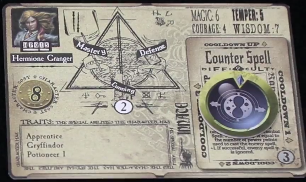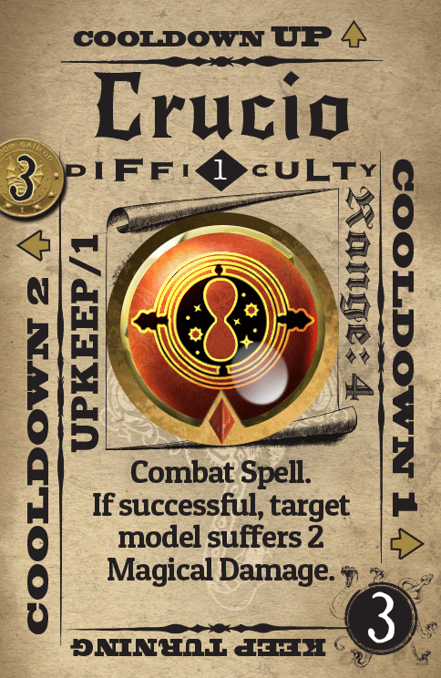 Des cartes sortilèges “secondaires” permettront d’équiper vos combattants selon votre stratégie. Un jeton posé sur la carte permettra d’indiquer combien de tours il faut patienter avant de pouvoir le lancer à nouveau.