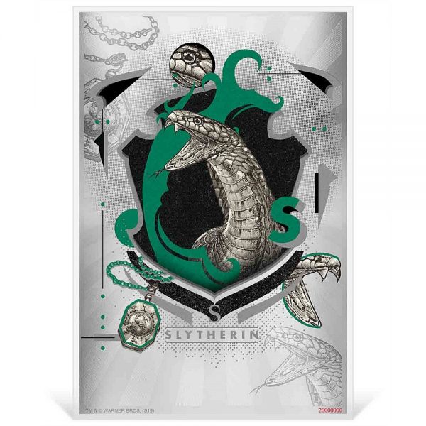 Mais l’originalité de ce tirage réside plutôt dans les billets en argent massif (5 g), aux couleurs des quatre maisons ! D’une valeur monétaire de 1$, il faut néanmoins débourser 49,95$ pour les obtenir. Ils sont tirés à 10 000 exemplaires chacun, et reprennent l’animal emblème de la maison ainsi que la relique du fondateur.