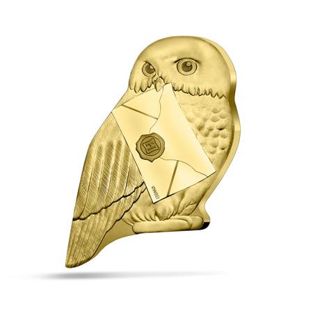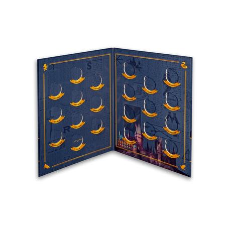 Joyaux de la collection, les deux pièces Hedwige de 56mm ont la forme de la célèbre chouette de Harry. Elle tient dans son bec la lettre de Poudlard. Au revers, la valeur monétaire apparaît dans l’éclair emblématique.