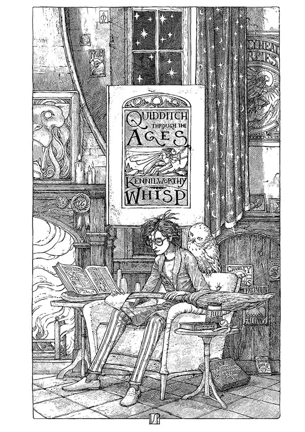 Le premier dessin met en évidence un livre avec le personnage qui lui est lié. On découvre Le Quidditch à travers les âges (Harry), Moi le magicien (Lockhart), Le manuel avancé de préparation des potions (Rogue) et Les Animaux fantastiques: Vie et habitat (Norbert)