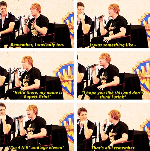 • Pour son audition, Ruper Grint a envoyé aux producteurs une vidéo d’un rap improvisé sur le rôle de Ron, et quelques images de lui déguisé en jeune fille. (source)