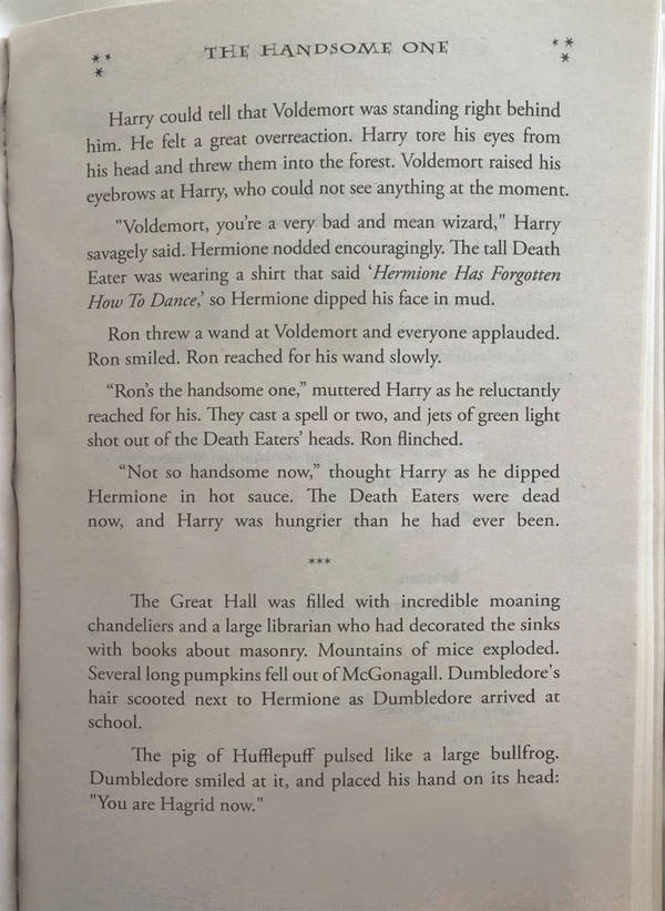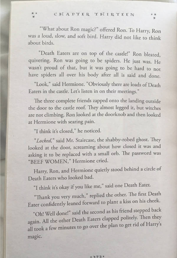 Au final, ce chapitre, accessible à tous sur le site de Botnik est plutôt amusant. Il pourrait s’apparenter à une fan-fiction un peu dérangée, tant et si bien qu’il a déjà inspiré plusieurs fanarts. Il contient également quelque passages qui sonnent parfaitement juste, comme lorsque Harry s’exclame fièrement : “Je suis Harry Potter, les forces du mal peuvent s’inquiéter, la vache !” En revanche, la notion de scénario est complètement absente.