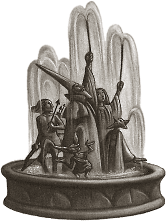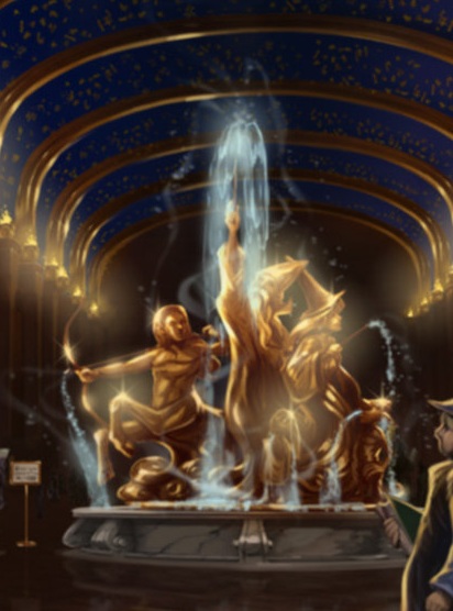 Des livres à Pottermore, plusieurs dessins de la fontaine illustrent parfaitement cette description.