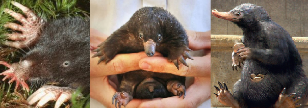 Le film Les Animaux fantastiques décrit le niffleur comme une créature particulièrement intéressée par les objets brillants. La taupe à nez étoilé n’est pas doté d’une vue exceptionnelle mais possède un autre sens très développé : le toucher.